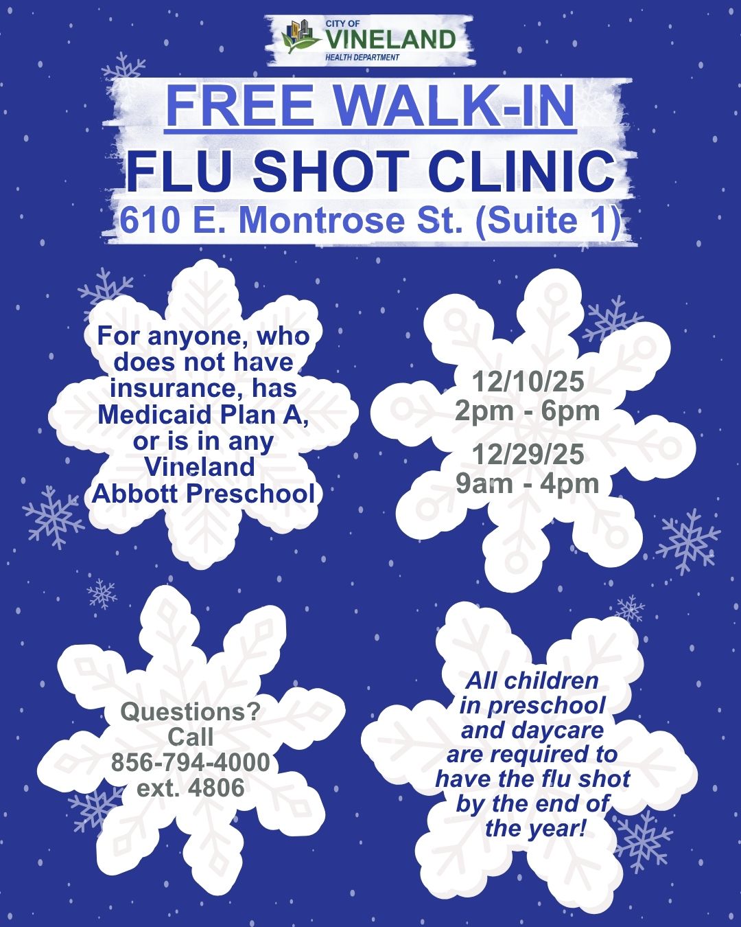 Protecting & improving the health of Vineland residents by preventing or eliminating disease and injury.